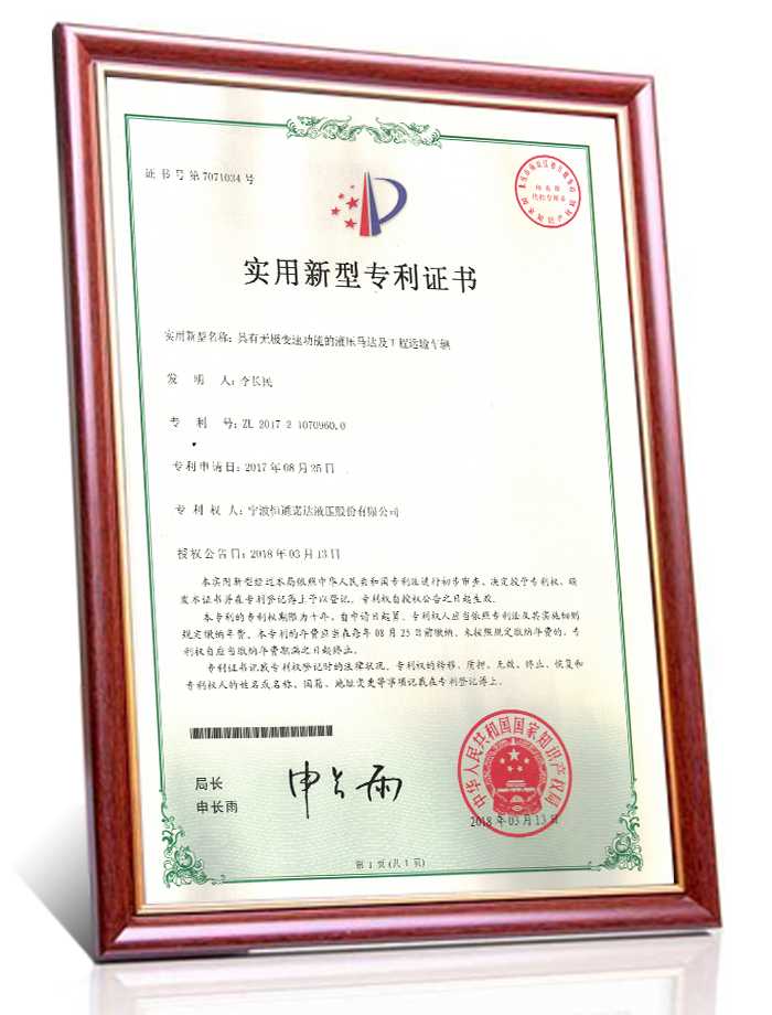 实用新型-低速大扭矩液压马达 及压路机发明专利证书